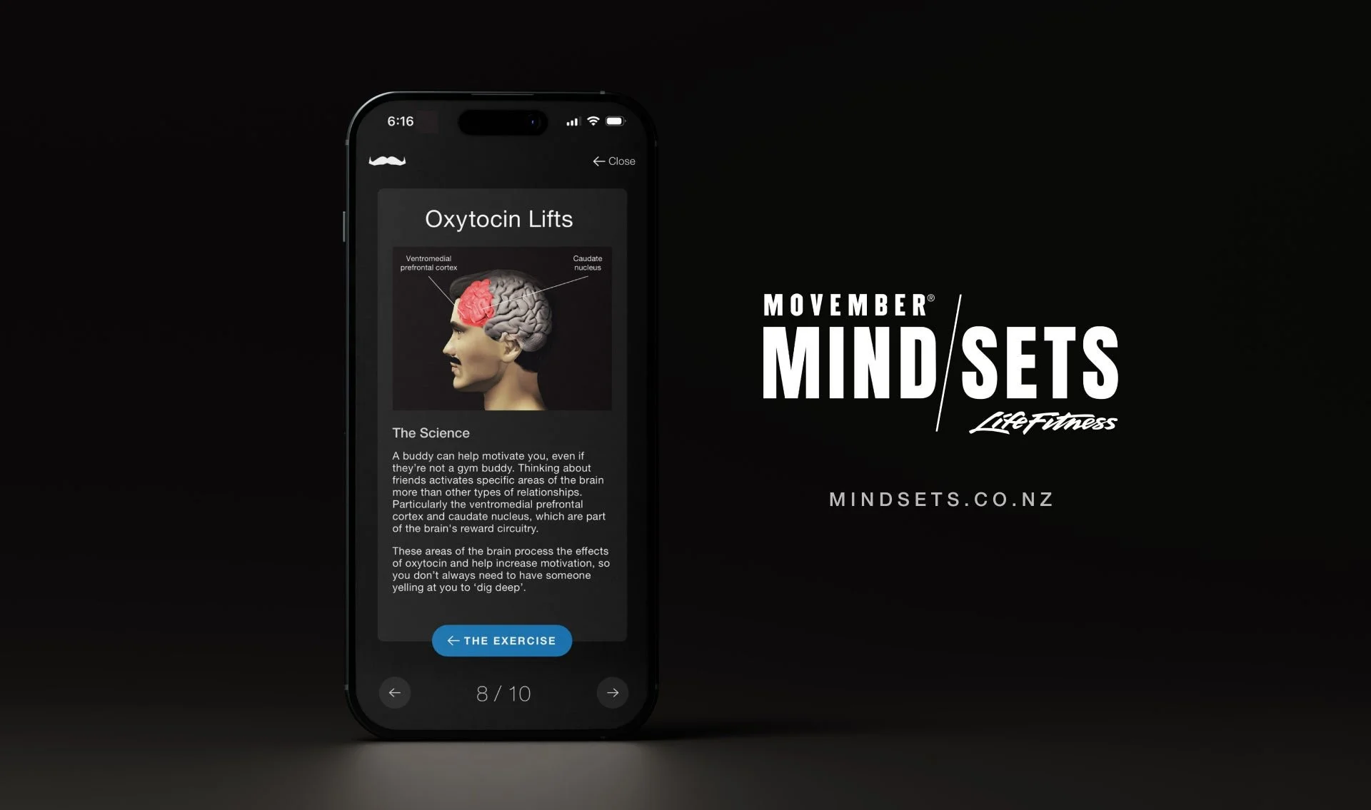 So we created a program designed to turn the moments of mindless scrolling between sets into mindful moments.